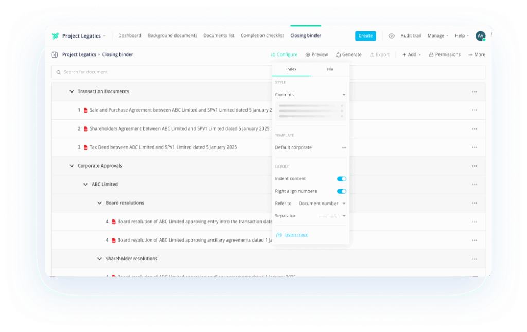 Bring all your documents together from any source in seconds, creating one organised binder workspace.