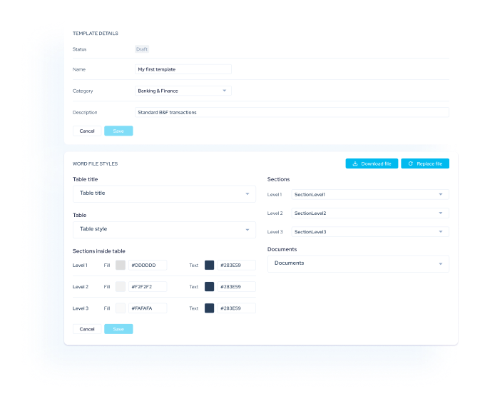 Pre-approved templates ensure polished, branded outputs across all matters.
