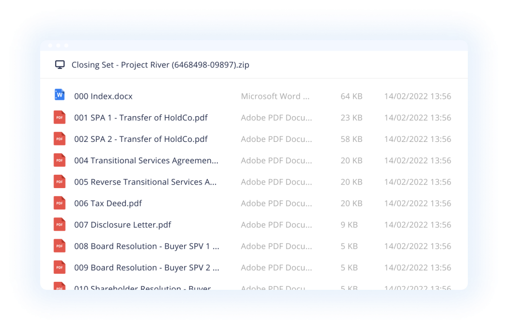 Bibles, closing sets, closing binders, closing folders, court bundles – whatever your use case, our Binders functionality will meet your needs.